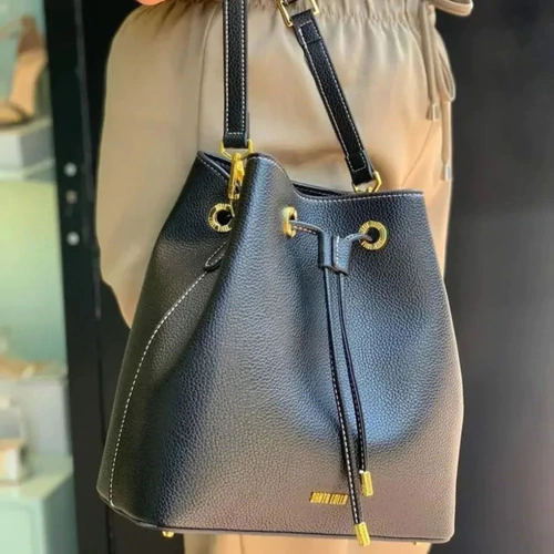 Bolsa bucket média confeccionada em material tecnologico modelo conta com duas alças para adaptar como transversal e alça de mão, compartimento interno com divisoria e fechamento em ziper. A bolsa contém detalhes em ferragens metalizadas e fechamento superior em cordão