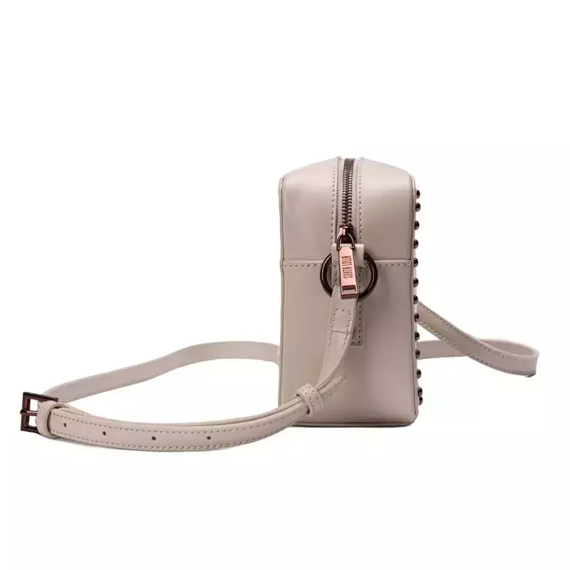 Bolsa Santa Lolla quadrada com apliques metálicos e alça transversal removível
