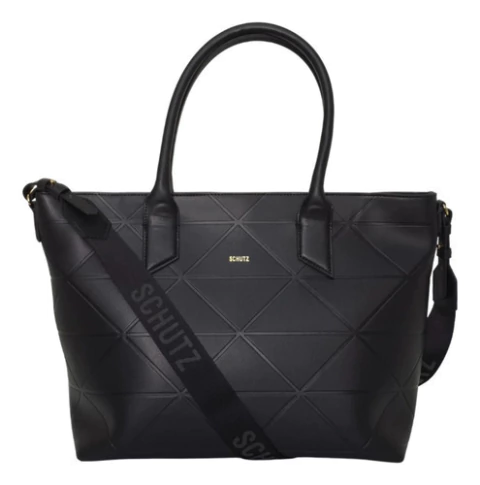 Descrição Bolsa shopping com detalhes na peça em alusão ao Triangle da marca, ícone da Schutz. Bolsa estruturada e com ótimo espaço interno, seu fechamento é através de zíper. Este modelo possui duas alças, uma ajustável e com opção de remoção, feita em tecido com o nome da marca estampado e uma mais curta de mão. Por que apostar? A bolsa mistura praticidade e estilo para o seu dia a dia. O resultado é uma peça moderna, elegante e descolada. Para usar do office às produções de passeio, aposte! Características do produto Material: Sintético Dimensões: 50 x 12 x 29cm (comprimento x largura x altura Referência: S500100833