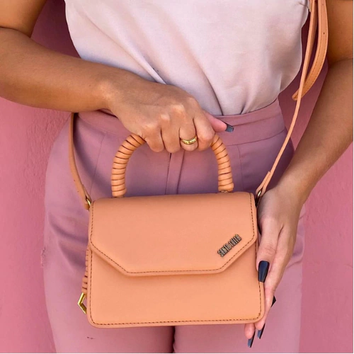 Bolsa transversal feminina, confeccionada em têxtil. Modelo tem formato quadrado e laterais arredondadas. Traz tira fina removível, alça de mão entrelaçada e fecho em tampo com imã central. As bolsas transversais vêm em diversos tamanhos, estilos e materiais, e são adequadas para uso casual ou mesmo em ocasiões mais formais.